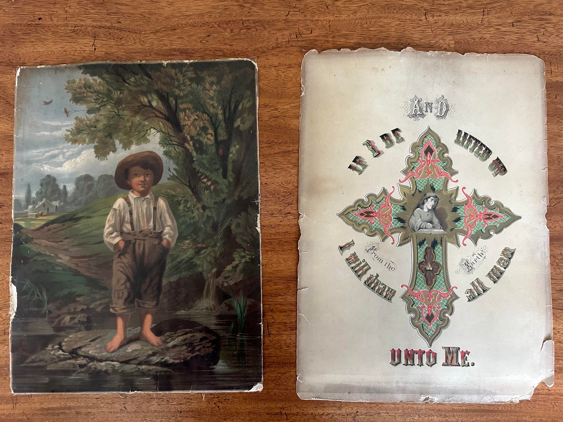 Vintage John Greenleaf Whittier "The Barefoot Boy" Canvas Art Print + "If I Be Lifted Up" Print – George Stinson & Company